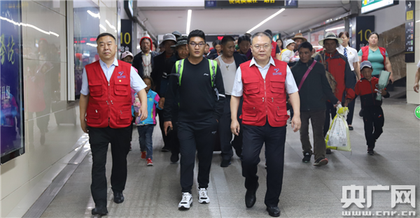 鄭州七院院長(zhǎng)袁義強(qiáng)、黨委書記曹德明到車站迎接(央廣網(wǎng)發(fā) 通訊員榮文翰 供圖)