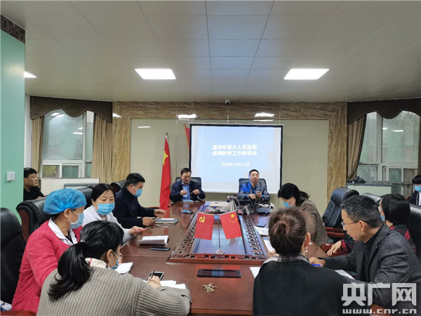 央廣網(wǎng)漯河(記者 王勇生 通訊員 張 迪)為嚴(yán)格加強(qiáng)疫情防控,確保疫情防控和醫(yī)療救治工作落實(shí)到位,10月14日下午17時左右,漯河市六院(漯河市心血管病醫(yī)院)疫情防控專題會議在門診四樓黨員活動室召開,黨委書記李俊才、院長關(guān)新、副院長趙森及市六院疫情防控領(lǐng)導(dǎo)小組成員參加會議。