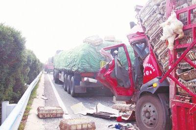 記者趕到連霍高速公路395公里寧陵縣段南半幅的事故現(xiàn)場(chǎng)看到,附近一公里的范圍內(nèi),多輛車(chē)追尾。其中,有滿(mǎn)載蘋(píng)果的車(chē)輛、滿(mǎn)載鴨子的車(chē)輛,滿(mǎn)載機(jī)器零件的車(chē)輛,還有一些轎車(chē)。