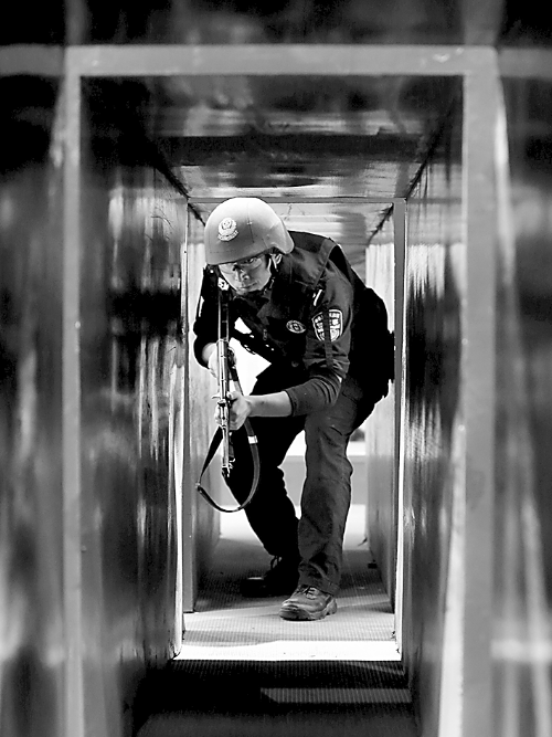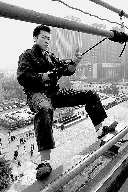 10月18日至19日,來自河南、江西、湖南和湖北的4支公安特警隊(duì)72名精英隊(duì)員在鄭州進(jìn)行大比武。(劉書亭 攝)
