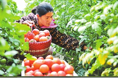 去年,新蔡縣龍口鎮(zhèn)邊劉莊村農(nóng)民王華斌打工返鄉(xiāng)后,籌資500萬(wàn)元建起200畝的豐園蔬菜種植基地,帶動(dòng)了40多戶(hù)鄉(xiāng)親種植蔬菜。圖為2月18日,王華斌的妻子在采摘西紅柿。趙學(xué)風(fēng) 攝