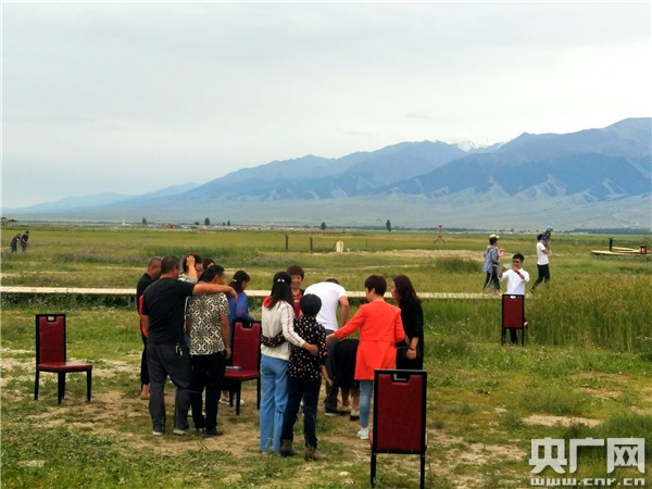 央廣網(wǎng)河南分網(wǎng)7月31日消息 (記者 汪寧)7月29日,在美麗的新疆哈密市巴里坤縣高家湖濕地公園,一群來自外地的游客在興致勃勃地玩著“搶凳子”游戲,清脆爽朗的歡聲笑語,在天山腳下飄蕩。