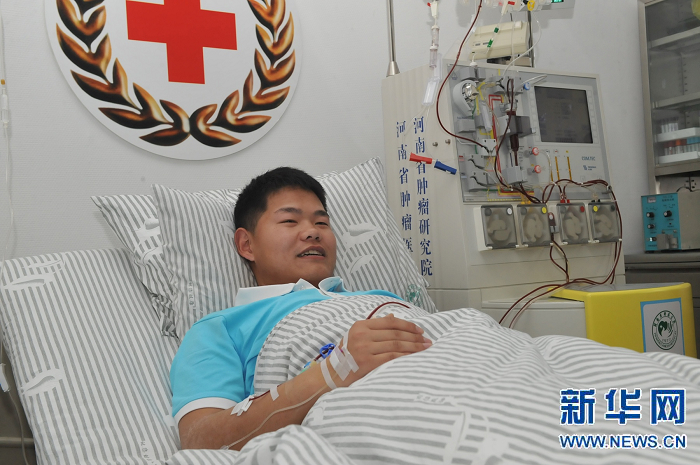 1月7日,河南科技大學(xué)學(xué)生劉凱在河南省腫瘤醫(yī)院捐獻(xiàn)造血干細(xì)胞。