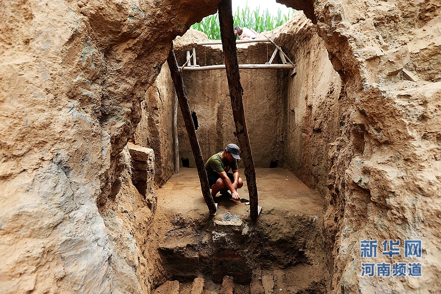 8月11日,一名工作人員在河南省洛陽(yáng)市孟津縣新莊村一東漢大型燒窯遺址進(jìn)行考古工作。