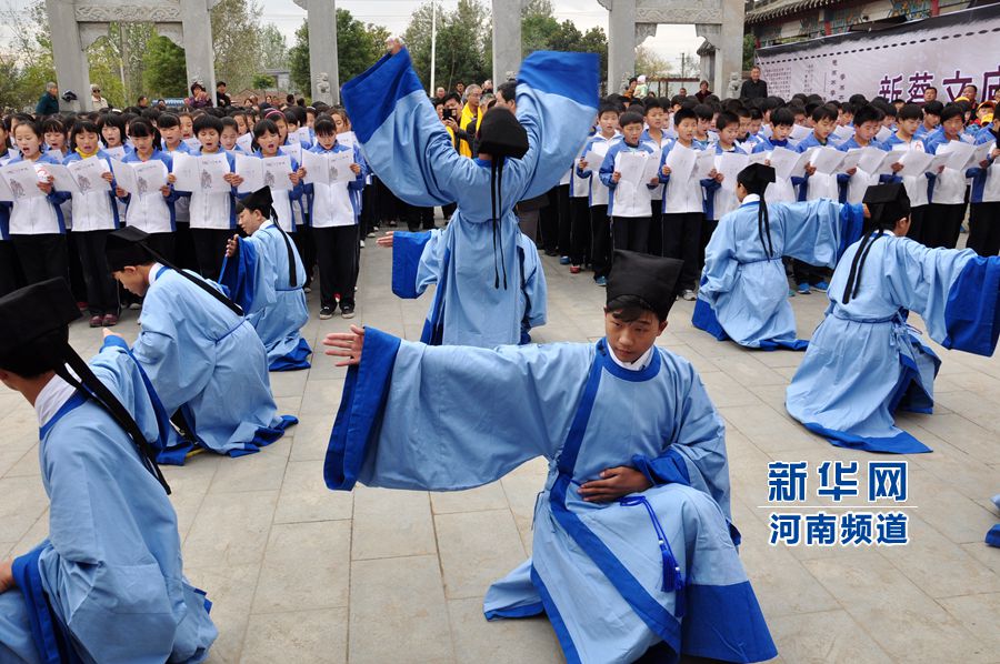 央廣網(wǎng)河南分網(wǎng)消息 “學(xué)而時習(xí)之,不亦說乎?有朋自遠(yuǎn)方來,不亦樂乎……10月28日上午,位于新蔡縣城的文廟院內(nèi)舉行盛大儀式,200多名中學(xué)生齊誦孔子《論語》選段,祭奠孔子誕辰2566周年。