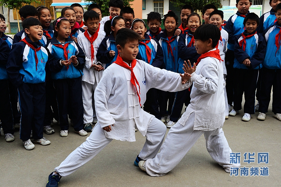 10月30日,河南焦作市溫縣陳家溝小學(xué)學(xué)生在課間練習(xí)太極拳。