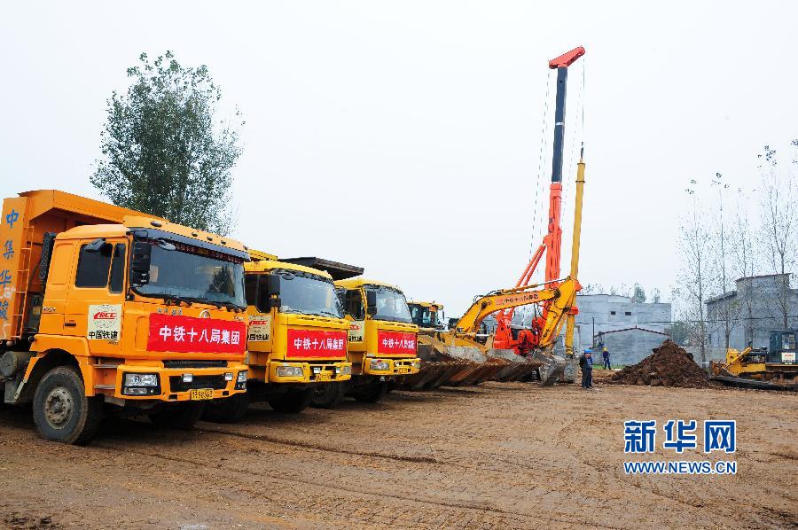 10月31日,在河南省平頂山市魯山縣辛集鄉(xiāng)柴莊村,鄭萬(wàn)高鐵河南段開(kāi)始施工。