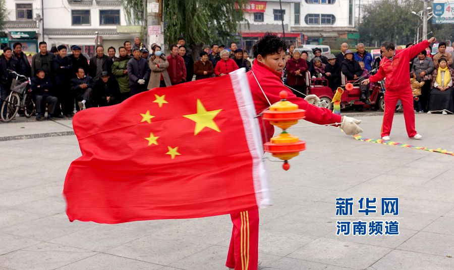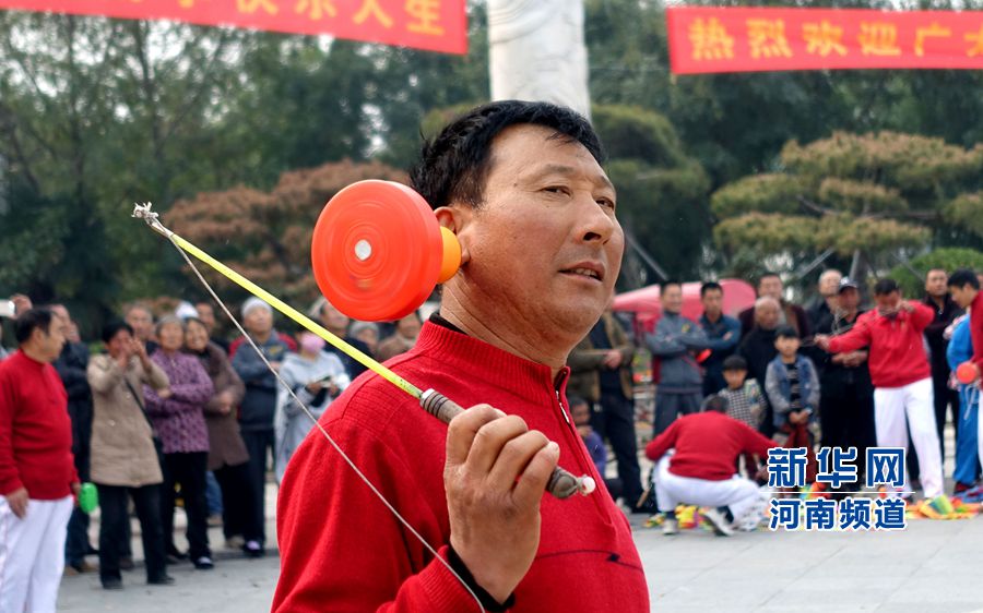 在河南省商丘市第六屆空竹文化節(jié)上,一位空竹愛好者在表演抖空竹技藝。