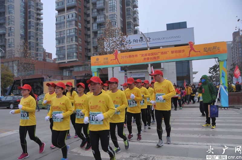 央廣網(wǎng)河南分網(wǎng)12月28日消息 為了倡導(dǎo)全民健身,打造焦作體育新名片,彰顯黎明腳步發(fā)起城市精神風(fēng)貌,12月27日,焦作市舉辦“龍?jiān)春䥽?guó)際廣場(chǎng)杯”2015焦作黎明腳步冬季長(zhǎng)跑節(jié)活動(dòng)。