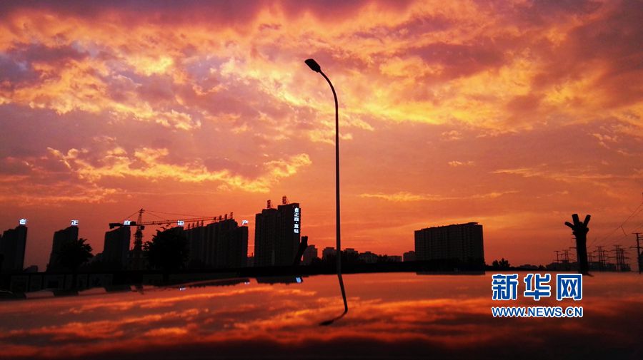 5月20日傍晚,河南省鄭州市市區(qū)上空出現(xiàn)“火燒云”美景!盎馃啤钡褂吃谲嚧爸隙@得特別壯美!盎馃啤睂儆诘驮祁,是由于地面蒸發(fā)旺盛,大氣中上升氣流的作用較大而產(chǎn)生,是大氣變化的現(xiàn)象之一。 新華網(wǎng)發(fā)(馮磊 攝)