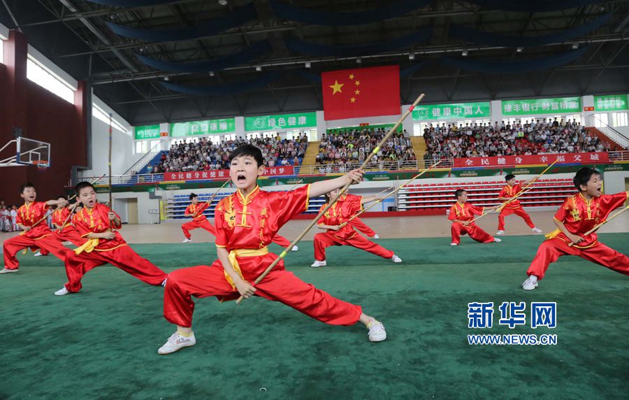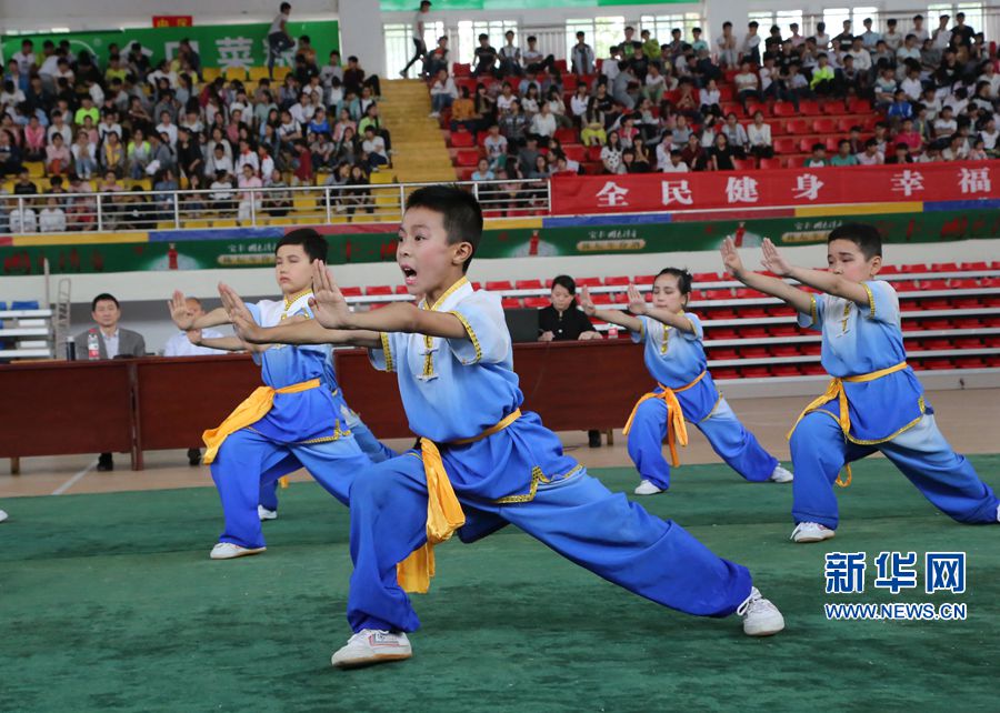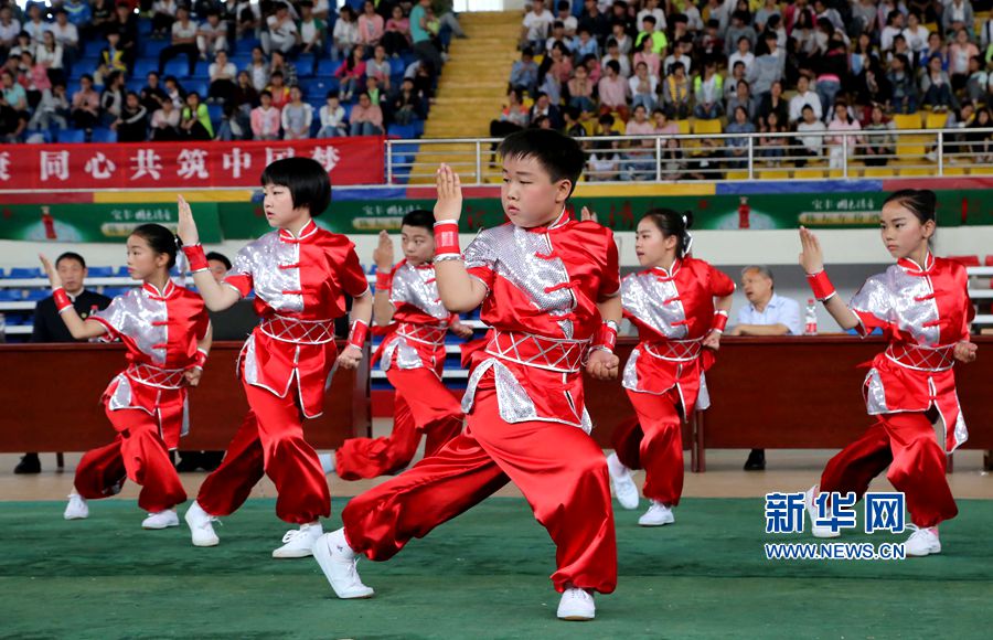 5月21日,河南省各地市縣的中小學(xué)生武術(shù)代表隊(duì)在河南寶豐參加武術(shù)比賽。