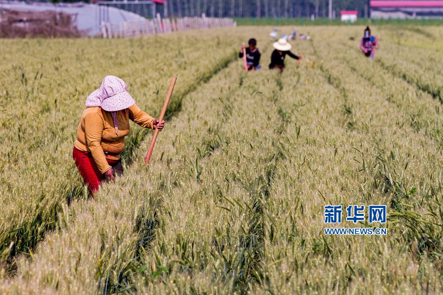 央廣網(wǎng)河南分網(wǎng)消息 2016年5月22日,河南省安陽縣農(nóng)民在即將成熟的麥田里套種玉米。目前,豫北地區(qū)距小麥?zhǔn)斋@還有半個月時間。在即將成熟的麥田里套種玉米、花生等秋季作物,可以有效增加莊稼的生長期,提高產(chǎn)量,增加收入。 新華網(wǎng)發(fā)(王子瑞 攝)