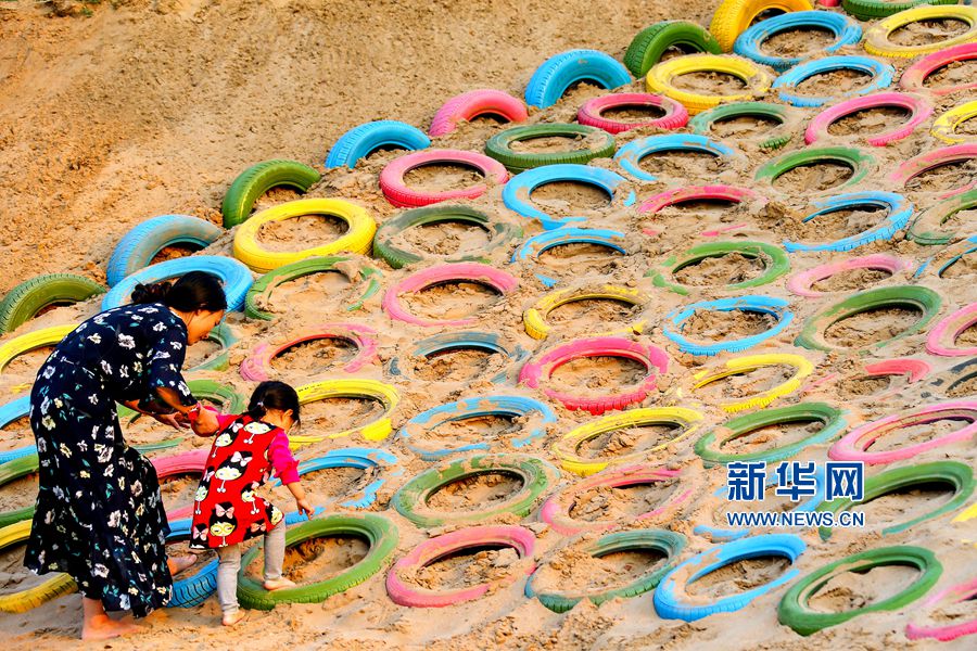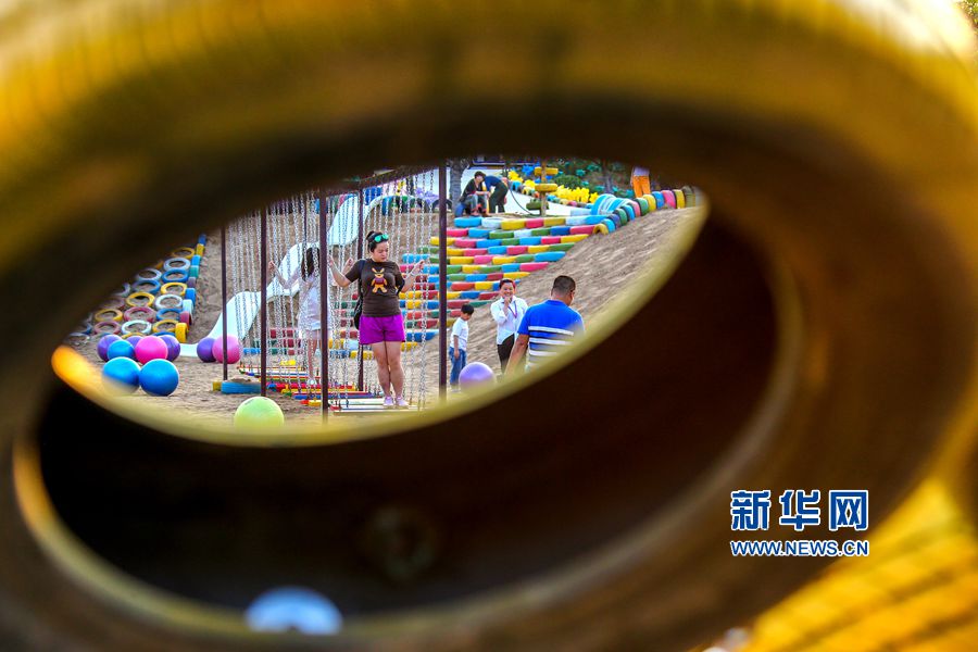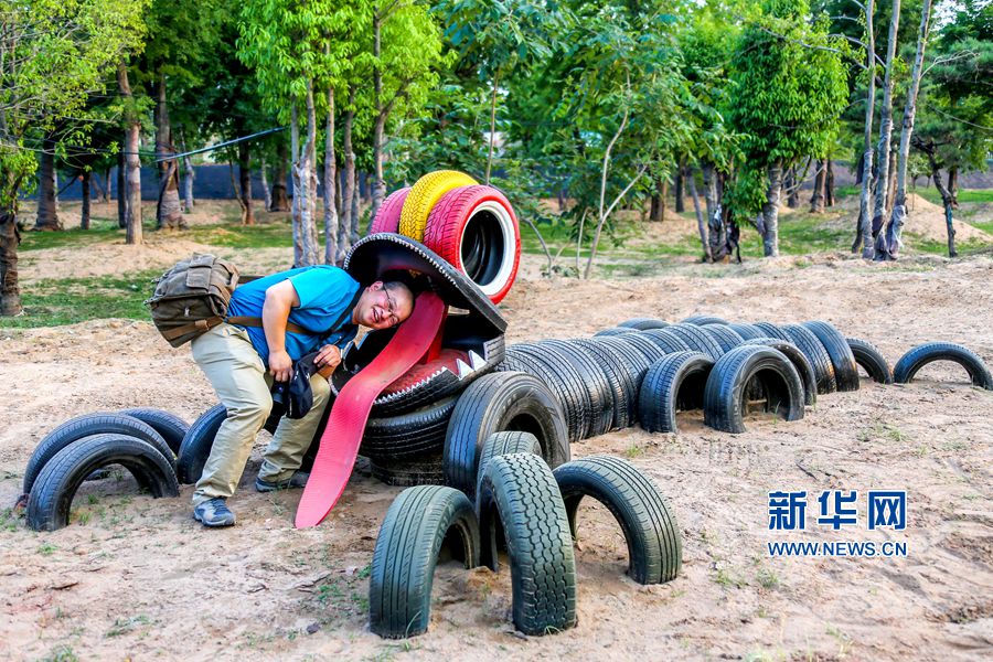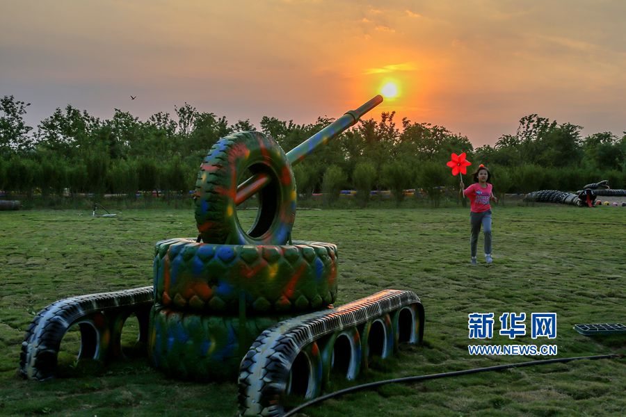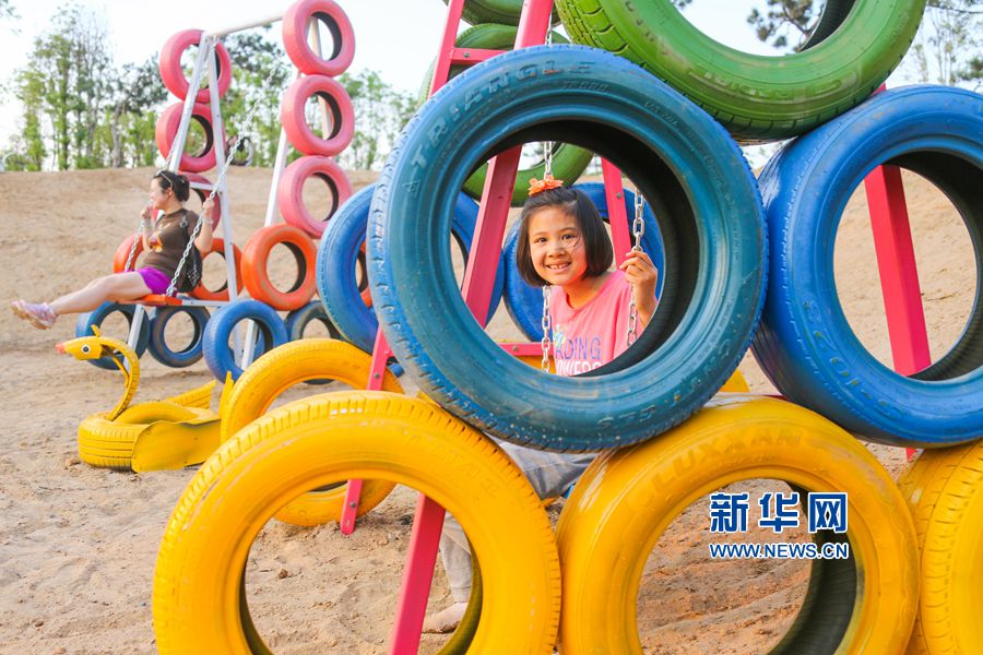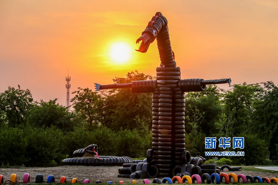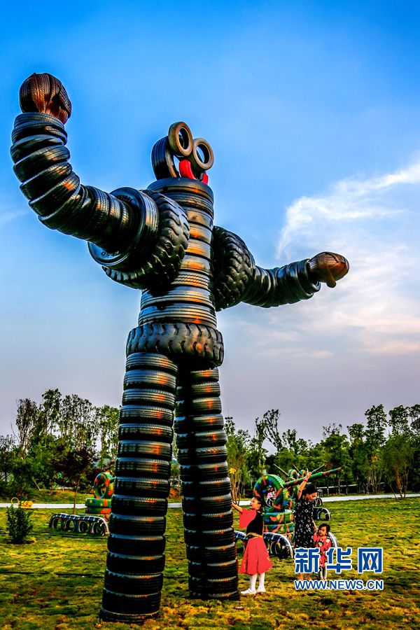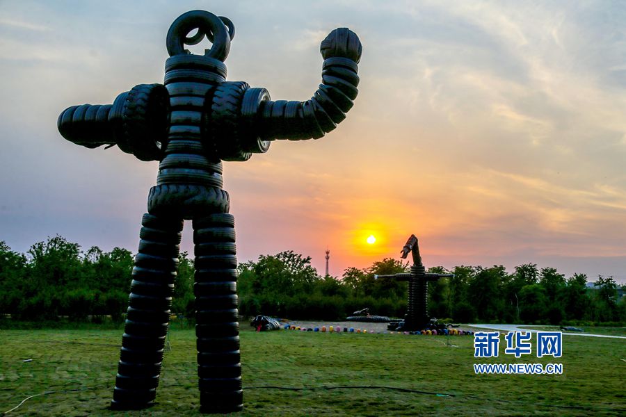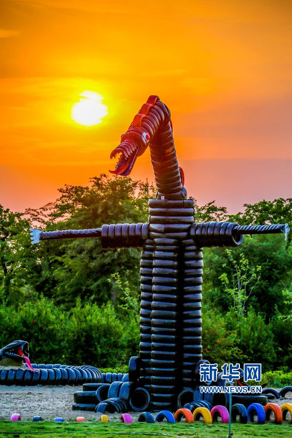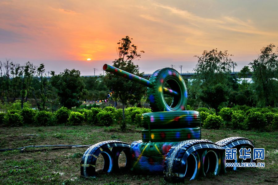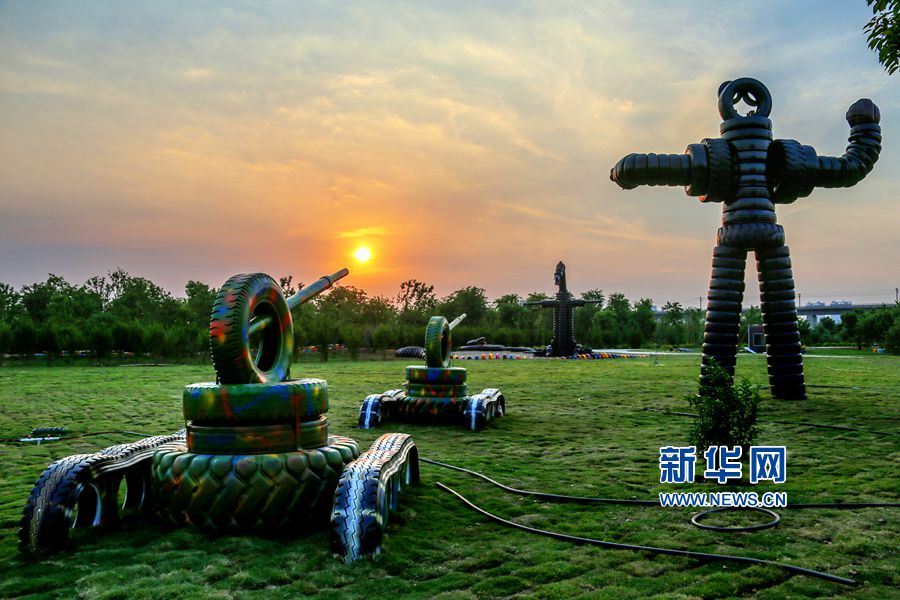 5月24日,位于河南洛陽的中國(guó)熏衣草莊園內(nèi),吊橋、道路、兒童樂園、鱷魚、變形金剛等造型,吸引眾多游客的目光,這些造型全部用廢舊輪胎制作完成,成為該莊園的一大亮點(diǎn)。據(jù)悉,這個(gè)以輪胎為主題的公園占地300余畝,150余組形態(tài)各異的輪胎造型全部由景區(qū)員工利用上萬條廢舊輪胎加工完成,是目前河南省第一座用廢舊輪胎打造的輪胎主題公園。新華網(wǎng)發(fā)(曾憲平 攝)