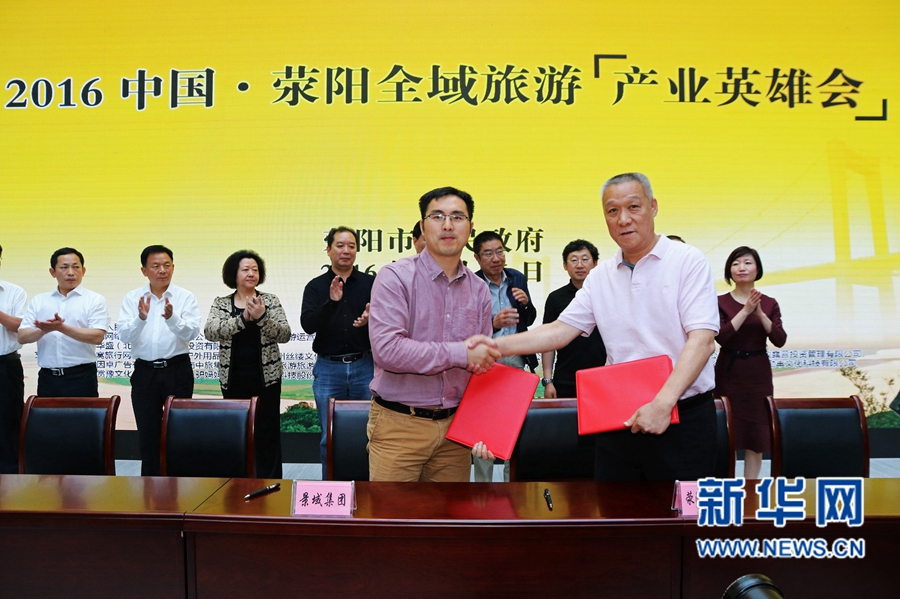 5月25日,河南省滎陽市舉辦了“2016中國·滎陽全域旅游產(chǎn)業(yè)英雄會”,數(shù)十位國內(nèi)旅游業(yè)的著名專家和知名企業(yè)負(fù)責(zé)人來到滎陽市,為“重點(diǎn)景區(qū)+重大活動+鄉(xiāng)村旅游”全域旅游大格局把脈問診。5月26日,在滎陽市政府舉行的旅游交流分享會上,相關(guān)企業(yè)與滎陽市有關(guān)方面初步達(dá)成了3個層次7個方面的戰(zhàn)略合作協(xié)議。新華網(wǎng)發(fā)(王威 攝)