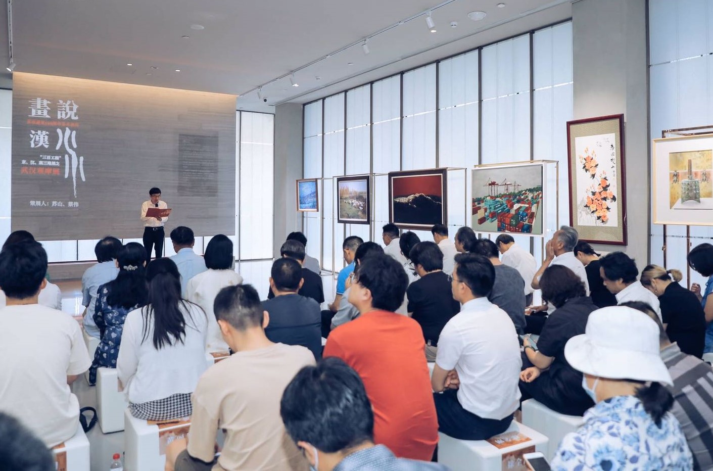 央廣網(wǎng)武漢6月7日消息(記者凌姝 通訊員一凡 陳。┢G陽高照,江水騰歡。6月5日,在漢江與長江匯合的武漢濱江,《畫說漢水、藝心向黨》經(jīng)典美術作品展在新落成的聯(lián)投集團浮生藝術館開幕,吸引社會各界名流300余人。