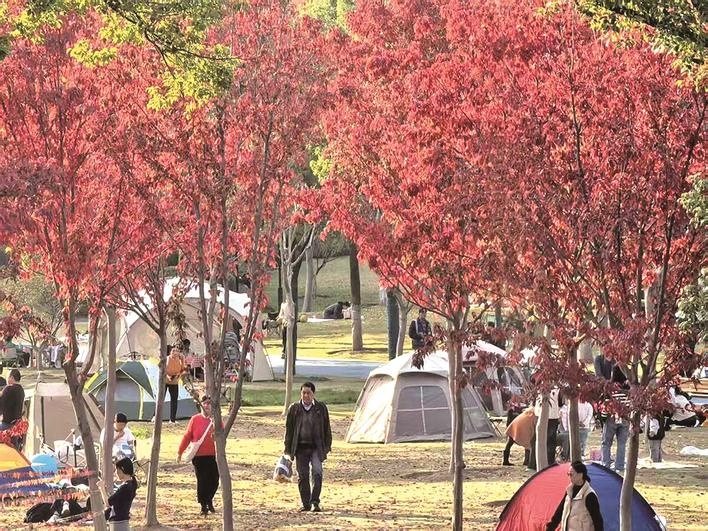 12月3日上午,武漢市江漢區(qū)常青公園內(nèi),紅葉如霞,景色如畫,不少市民在草地上扎起帳篷、鋪上露營毯,悠閑地享受冬日暖陽。常青公園管理中心負(fù)責(zé)人表示,今年紅葉季預(yù)計將持續(xù)到12月中旬,現(xiàn)已開放紅葉景觀和露營區(qū)域,歡迎市民前來賞景露營。據(jù)悉,目前該區(qū)王家墩公園、菱角湖公園、后襄河公園等都可以露營。