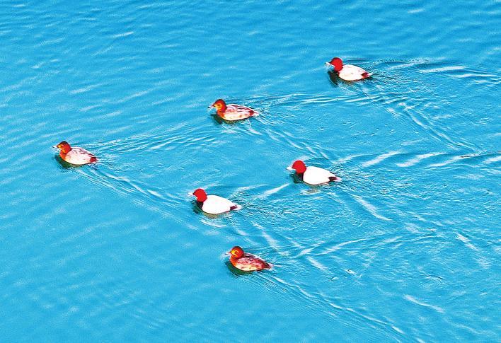 青頭紅頭潛鴨相聚南水北調(diào)水源地