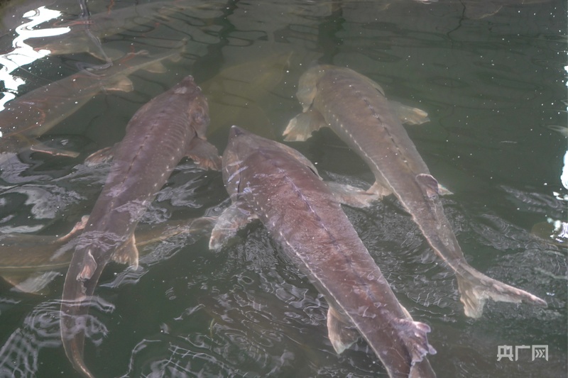 鱘魚在模擬清江生態(tài)的水體中暢游(央廣網(wǎng)記者鄧子依 攝)