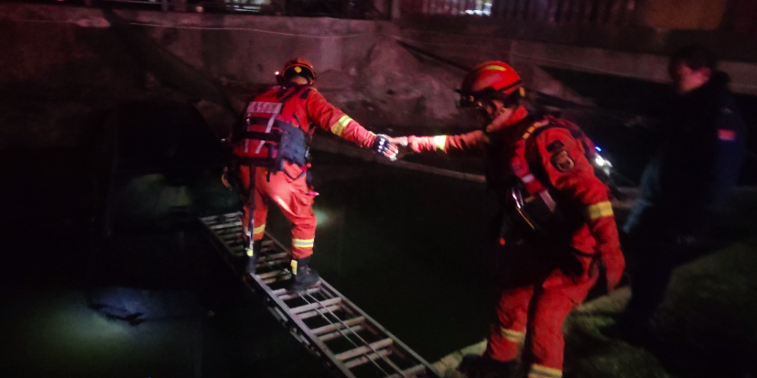 央廣網(wǎng)荊州1月16日消息(記者鄧子依)1月13日凌晨,荊州市公安縣斗湖堤鎮(zhèn)發(fā)生驚險(xiǎn)一幕:一名女性駕駛員因操作失誤,連人帶車滑入河中。在車輛不斷下沉的危急關(guān)頭,消防救援人員迅速架起“生命拉梯”,成功將被困女子救出。