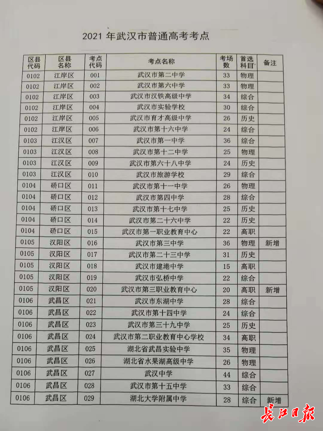 官方發(fā)布武漢市2021年高考考點(diǎn)。記者劉嘉 攝