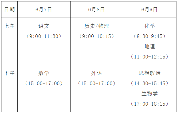 高考時(shí)間回到6月 考試時(shí)長(zhǎng)保持不變