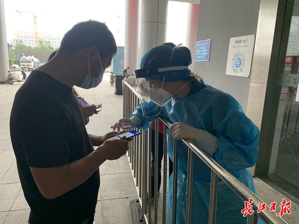 記者探訪多個(gè)新冠疫苗接種點(diǎn)發(fā)現(xiàn),居民全程自覺佩戴口罩,各接種點(diǎn)嚴(yán)格執(zhí)行掃碼測溫,在武漢市金銀潭醫(yī)院武漢客廳新冠疫苗臨時(shí)接種點(diǎn),大廳門口排著長隊(duì),指示牌上標(biāo)明:“本接種點(diǎn)按防控要求入內(nèi),一人一碼!惫ぷ魅藛T要求每人都掃碼測溫,即使健康碼和行程卡都無異常,工作人員也要詢問近期是否去過中高風(fēng)險(xiǎn)地區(qū),審核完成后接種人員方可進(jìn)入一樓等候區(qū)。