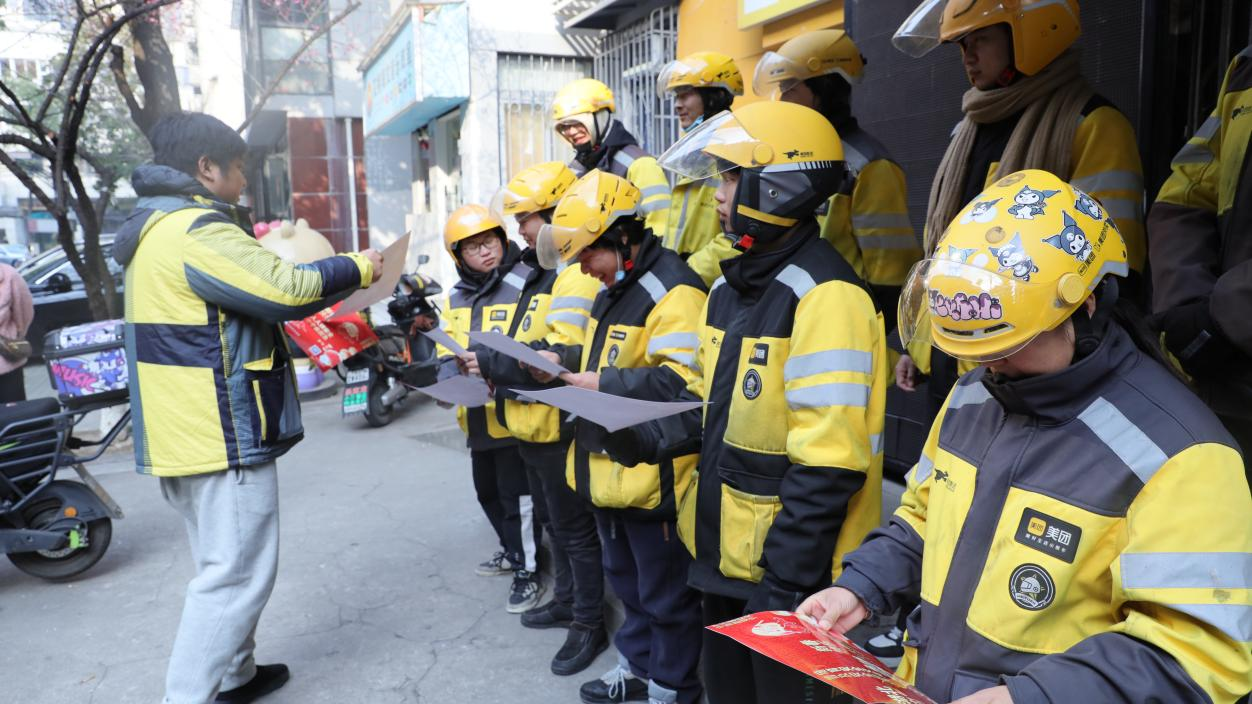 湖北省應(yīng)急管理廳攜手美團(tuán)外賣(mài),通過(guò)武漢地區(qū)12個(gè)外賣(mài)站點(diǎn)1000余名外賣(mài)騎手,將3萬(wàn)份印有應(yīng)急安全宣傳標(biāo)語(yǔ)的紅色墊餐紙送至市民手中,助力應(yīng)急安全知識(shí)走進(jìn)千家萬(wàn)戶。