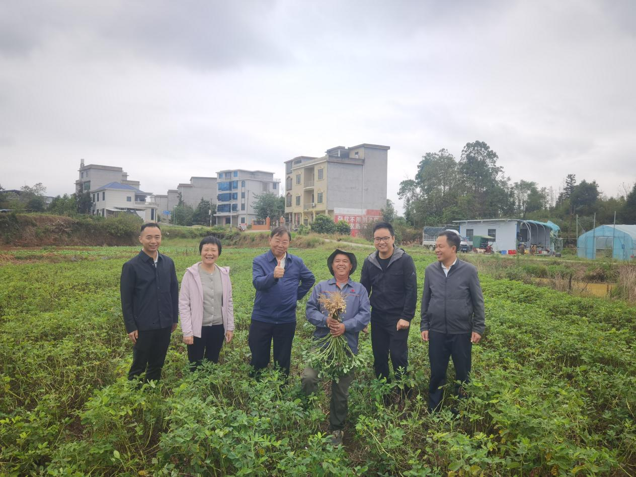 兩位教授現(xiàn)場檢驗秋花生的生長情況(洞口縣委宣傳部 供圖)
