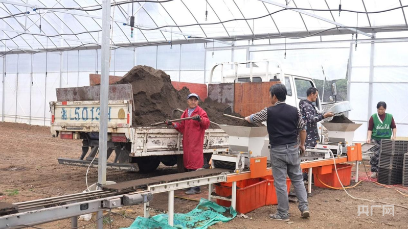 半自動育秧機(jī)在進(jìn)行精準(zhǔn)播種、覆土保濕(央廣網(wǎng)發(fā) 雷婉婷 攝)