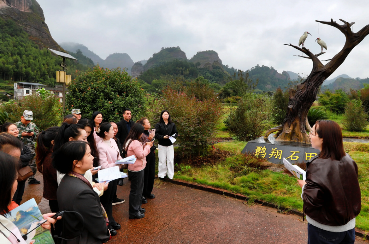 10月20日,“崀山景區(qū)朱鹮研學課程開發(fā)與導師專項培訓班”在湖南新寧崀山北大門開講,標志著崀山正式推出朱鹮“研學游”新業(yè)態(tài)。