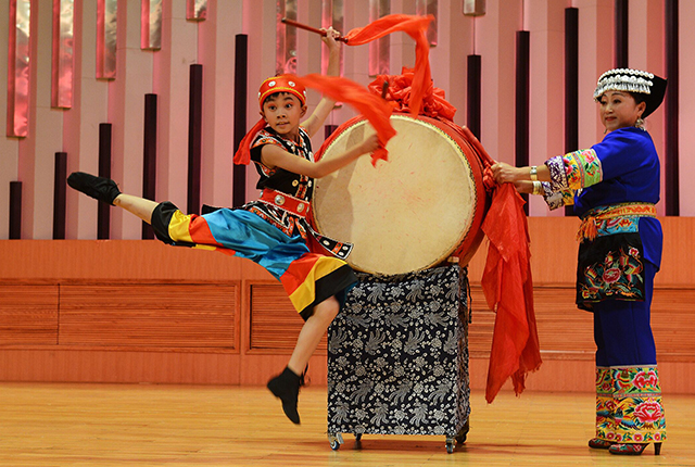 11月8日,湘西小鼓手表演節(jié)目《山娃戲鼓》