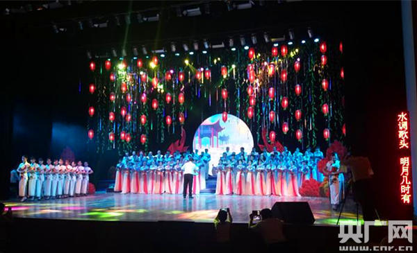 “中秋音樂詩會”在大合唱《水調歌頭·明月幾時有》的歌聲中拉開序幕。名家讀詩、作者自吟自唱、主持人輪流朗誦、讀詩班集體誦讀……現場品讀了近40首詩作。期間還穿插了大型合唱、旗袍表演、歌曲演唱、鋼琴古箏等樂器演奏等,豐富多彩的節(jié)目讓近4個小時的讀詩會精彩紛呈。
