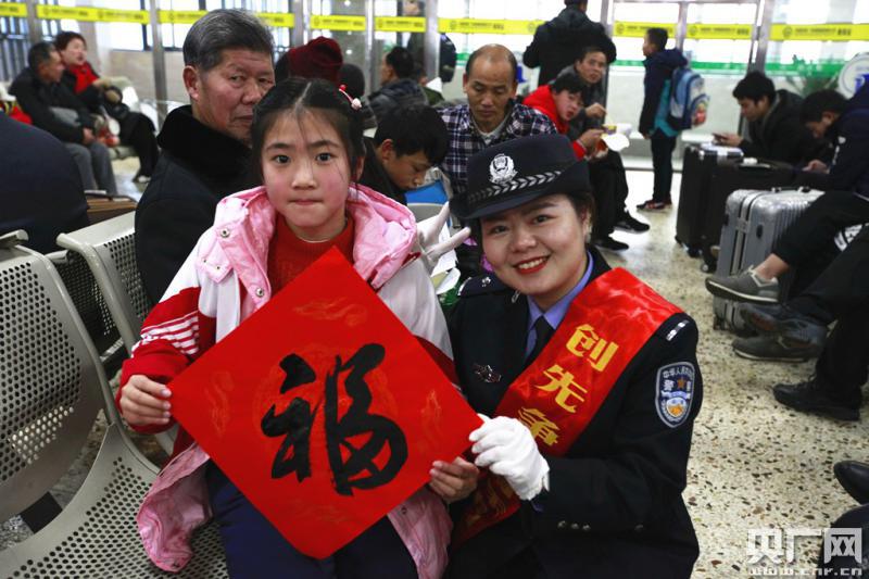 。青年民警向旅客贈(zèng)送“!弊 央廣網(wǎng)發(fā) 邱旭琳攝)