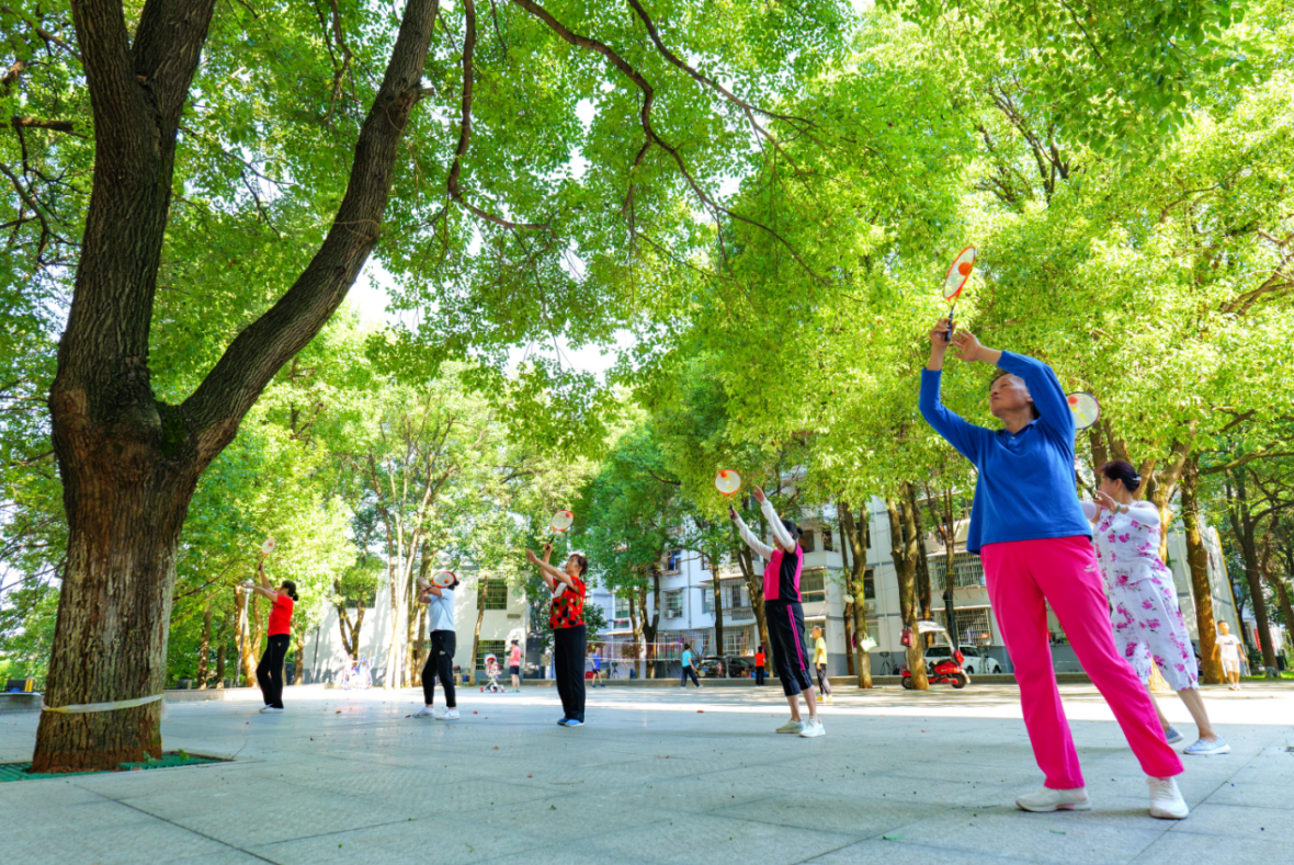 三月,春意盎然。湖南省長沙縣泉塘街道星悅社區(qū)3614小區(qū)廣場上,居民們正在打太極、跳廣場舞,笑聲穿過蔥郁的綠植。