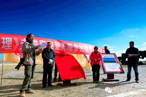 圖片1:《中國國家地理》簽約攝影師“最美巡攝團”走進青;顒蝇F(xiàn)場,簽約攝影師袁蓉蓀正在宣讀青海首批20個最美觀景拍攝點名單。