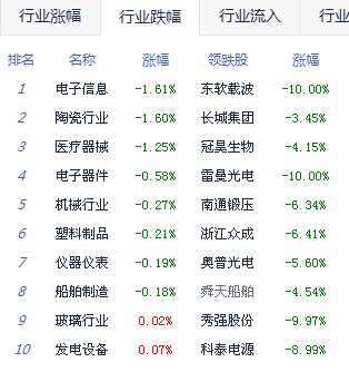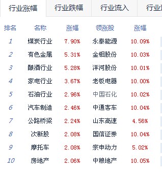 A股市場板塊及個股漲跌幅排行