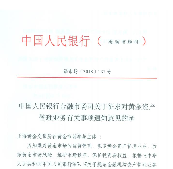 央行《關(guān)于征求黃金資產(chǎn)管理業(yè)務(wù)有關(guān)事項(xiàng)通知(征求意見稿)》