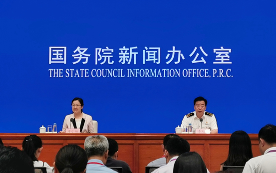 12日,海關(guān)總署新聞發(fā)言人李魁文介紹今年上半年我國外貿(mào)進(jìn)出口情況。(央廣網(wǎng)記者 高藝寧 攝)