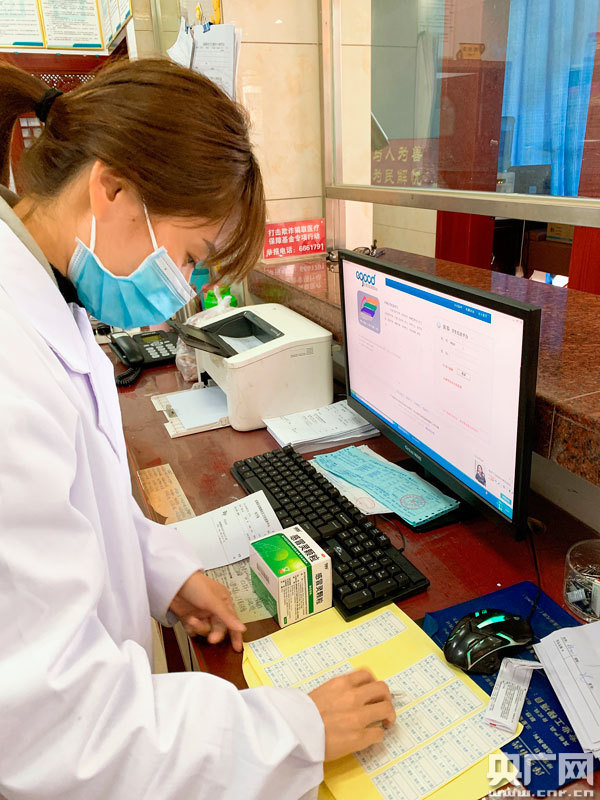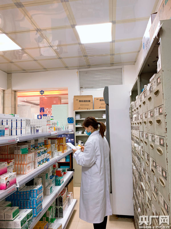張琦在藥房查看藥品儲(chǔ)存情況