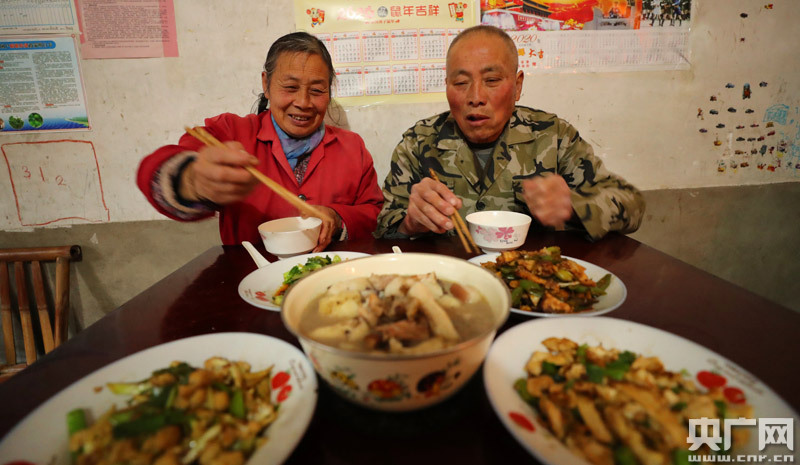 1月24日,大年三十,江西省吉安市泰和縣澄江鎮(zhèn)官溪村9組脫貧戶康水根夫婦正在吃年夜飯。