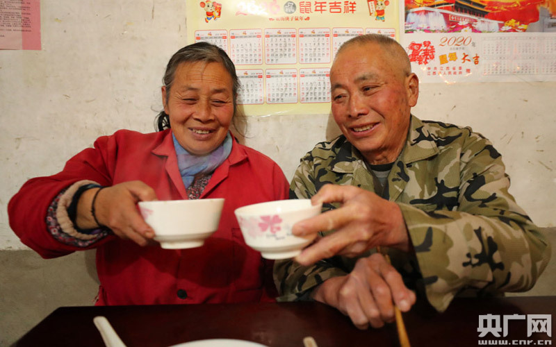 1月24日,大年三十,江西省吉安市泰和縣澄江鎮(zhèn)官溪村9組脫貧戶康水根夫婦正在吃年夜飯。