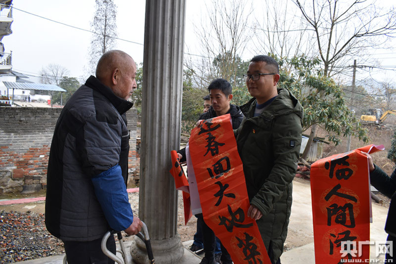 扶貧干部給張緒火老人送來(lái)春聯(lián)