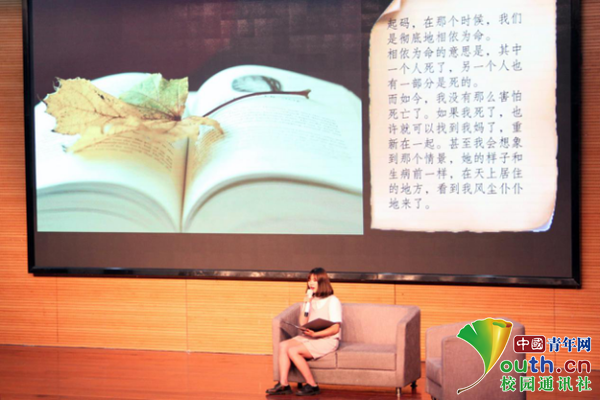 朗讀者王心怡正在分享父母的信 中國青年網(wǎng)通訊員 鄒碧華 提供
