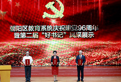 人民網(wǎng)北京6月30日電 (趙英梓)今天,朝陽區(qū)教工委、教委舉辦了朝陽區(qū)教育系統(tǒng)慶祝建黨96周年暨第二屆“好書記”風(fēng)采展示活動。望京實驗學(xué)校黨總支書記黃翔、朝陽區(qū)教育網(wǎng)絡(luò)信息中心黨支部書記和向東、芳草地國際學(xué)校黨總支書記穆英三位書記,獲得了2017朝陽區(qū)教育系統(tǒng)“好書記”榮譽(yù)稱號。