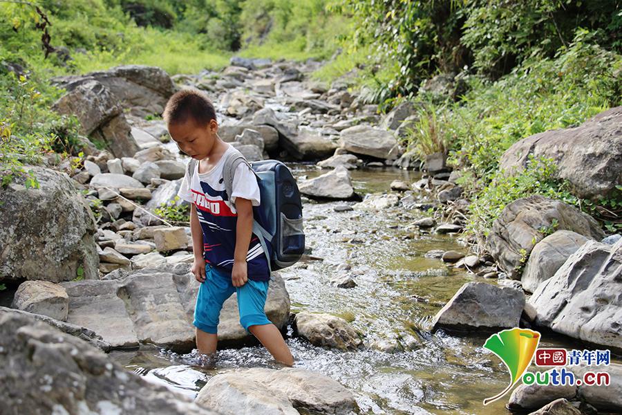 堅毅 8公里的逐夢之路 “我沒有媽媽,爸爸在外面打工,很難見到他,爺爺奶奶老了,走不了這么遠的路過來。老師,你能讓我上課嗎?”一個怯怯的聲音傳到志愿者趙晨的耳中,她不由得仔細端詳著眼前這個小男孩。 兩兄妹回家路上必經(jīng)的小溪。中國青年網(wǎng)通訊員 譚雅玲攝 支教組制定的招生報名條件中明確要求必須要有家長帶著孩子來報名,男孩自知自身的情況顯然不符合條件,但是抱有強烈讀書熱情的他只能試探著詢問志愿者。 小男孩叫張亮,今年8歲,他還有個妹妹,叫張婷,今年7歲。與孝蓮一樣,張亮兄妹也是一對苦命的孩子,不同的是,他們沒了媽媽,卻還有個常年在外打工的爸爸。 出于關心,趙晨和隊員們決定送兄妹倆回家。 “這個是什么?”路上,隊員指著一片瓜藤問亮亮。 “這是瓜瓜,可以炒很多種菜。” “你還會做菜?” “對啊,爺爺奶奶端不動鍋兒!” 這段簡短的對話,使志愿者心中有說不出的難受,他們不知道小小年紀的亮亮究竟經(jīng)歷了什么,在家中扮演著怎樣的角色。 -