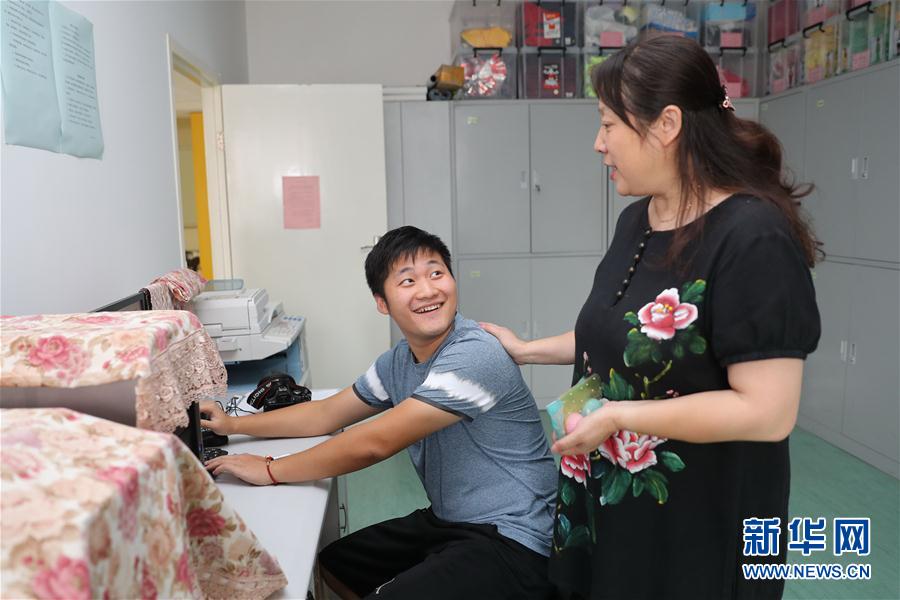 張鳴川(左)在幼兒園資料室與園長交流工作(9月8日攝)。新華社記者 張玉薇 攝 -