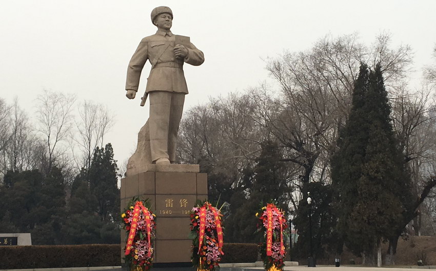 2月27日上午,遼寧省暨撫順市各界向雷鋒墓敬獻花籃儀式在撫順市雷鋒紀念館雷鋒塑像前舉行。