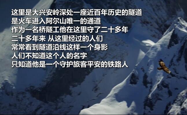 央廣網(wǎng)北京2月19日消息 凄厲的蒼鷹,白雪皚皚的大興安嶺,一座孤零零的巡道房,一座近百年歷史的隧道,一個迎送火車的老巡守員。