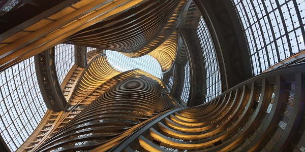 由于麗澤SOHO地塊下方的地鐵連通線將整個地塊一分為二,因此建筑師創(chuàng)造性地設計了高達200米的全球最高中庭解決了這一難題。每層樓的中央部分,都可以通過近200米高的通透中庭享受到自然光線。項目竣工后,這一200米高的異形中庭也將申請世界吉尼斯紀錄。