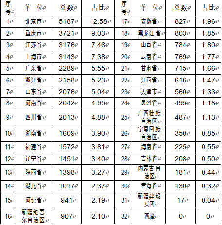 價格舉報件中,最多的五個省區(qū)市依次為:北京市5187件,占12.58%;重慶市3721件,占9.03%;江蘇省3176件,占7.46%;上海市3143件,占7.38%;廣東省2289件,占5.55%。最少的五個省區(qū)市依次為:西藏自治區(qū)0件;新疆兵團(tuán)17件;青海省130件;內(nèi)蒙古自治區(qū)181件;吉林省208件。